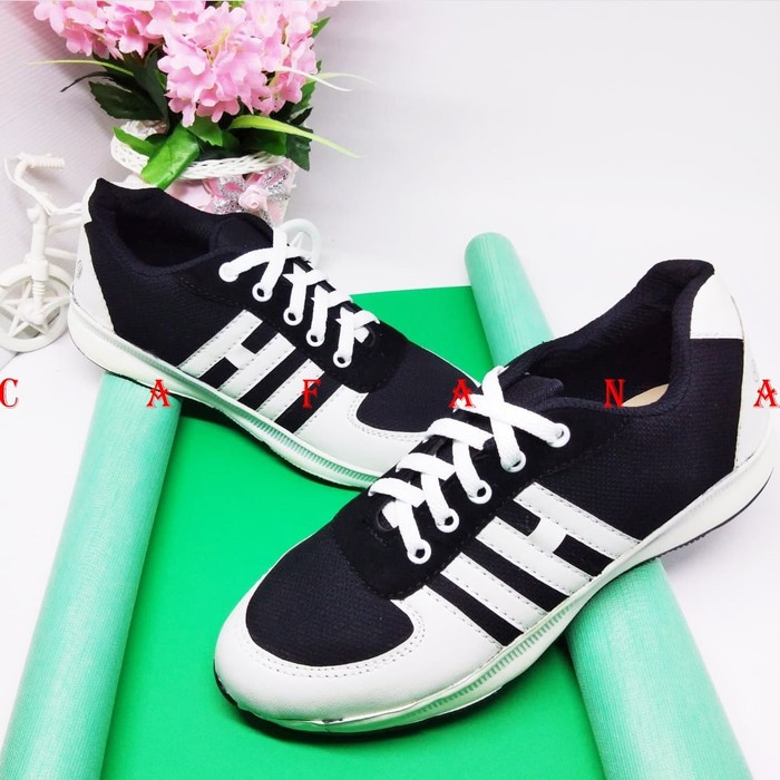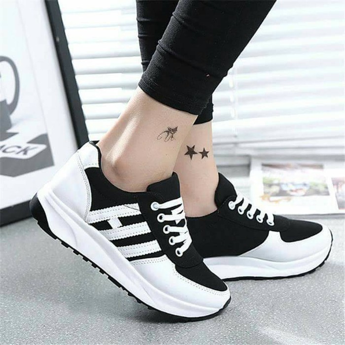 D D Sepatu Sneakers Wanita Strip 3 Hitam Putih 36 40 Elegan Lazada Indonesia